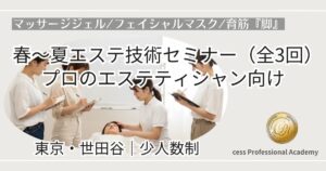 | 対象 | プロ向けの講習内容です。エステ初心者の方は事前にご相談ください。 |