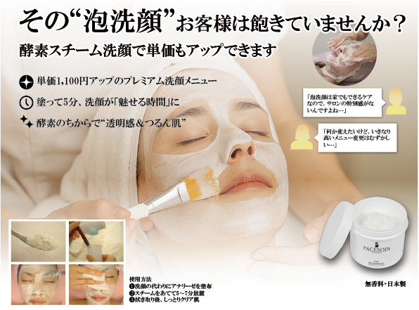 【使用法】適量を水で溶き、顔全体に塗布。スチームをあて5~15分放置後ウェットコットンなどでふき取ります。